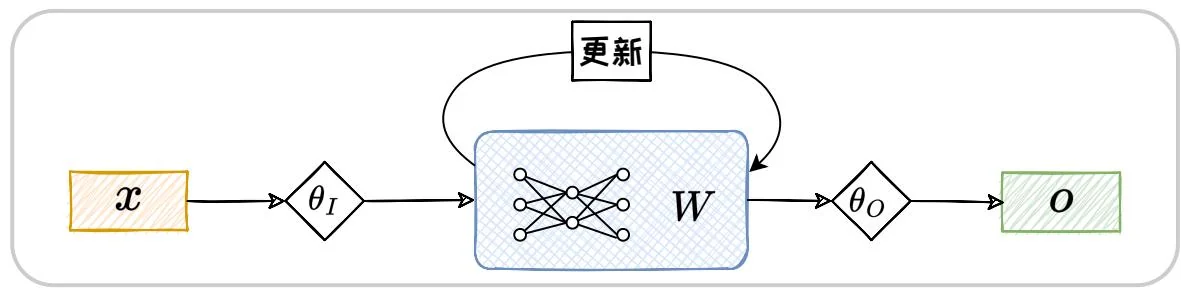 其中 θK\theta_{K}θV\theta_{V} 是通过外部循环学习到的参数。接着, 模型以学习率 η\eta 利用该损失进行梯度下降, 更新隐藏状态: