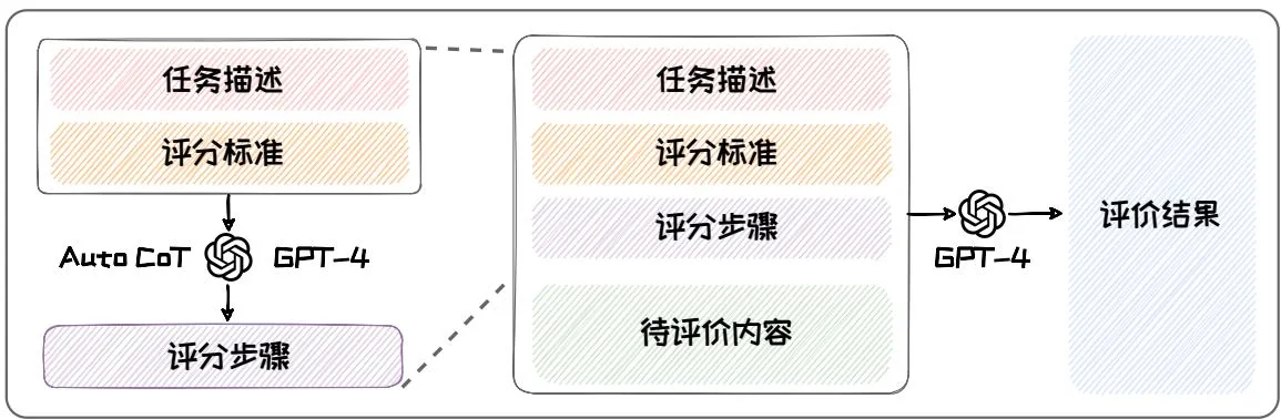 相较于统计评测指标,BERTScore更接近人类评测结果。但是,BERTScore依赖于人类给出的参考文本。这使其无法应用于缺乏人类标注样本的场景中。得益于生成式大语言模型的发展,G-EVAL利用GPT-4在没有参考文本的情况下对生成文本进行评分。G-EVAL通过提示工程(Prompt Engineering)引导GPT-4输出评测分数。Prompt Engineering将在本书第三章进行详细讲解。