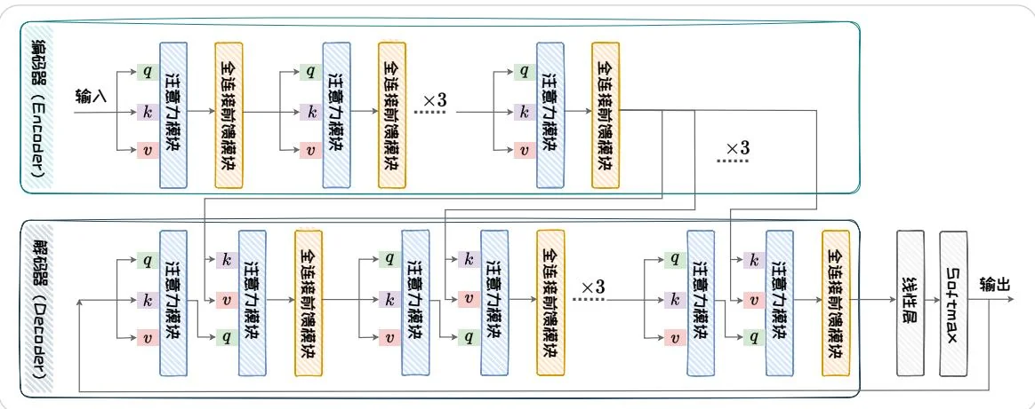 注意力层采用加权平均的思想将前文信息叠加到当前状态上。Transformer的注意力层将输入编码为 query,key,value 三部分,即将输入 编码为 。其中,query 和 key 用于计算自注意力的权重 ,value 是对输入的编码。具体的,