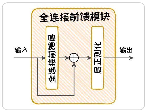 引入残差连接可以有效解决梯度消失问题。在基本的Transformer编码模块中包含两个残差连接。第一个残差连接是将自注意力层的输入由一条旁路叠加到自注意力层的输出上,然后输入给层正则化。第二个残差连接是将全连接前馈层的输入由一条旁路引到全连接前馈层的输出上,然后输入给层正则化。
