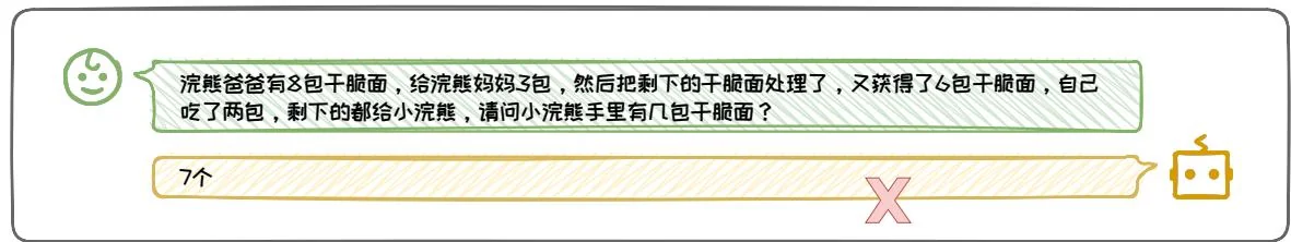 如图3.21所示。用户提出了一个关于成年小浣熊一天需要吃多少干脆面才能满足能量需求的问题。通过分步引导,我们将这个问题分解为两个关键的小问题:“一只成年小浣熊,一天需要摄入多少热量?”和“一包干脆面的热量是多少?”。模型分别回答了这两个问题,提供了小浣熊的日热量需求和干脆面的热量含量。随后,通过归纳总结的提示“结合以上信息,成年小浣熊一天需要吃多少包干脆面才能满足能量需求?”,我们将这些分散的信息整合起来,计算出小浣熊需要摄入的干脆面数量。这一过程不仅展示了如何通过逐步提问来引导模型提供详细信息,还强调了在解决复杂问题时,系统地分解问题和整合答案的重要性。