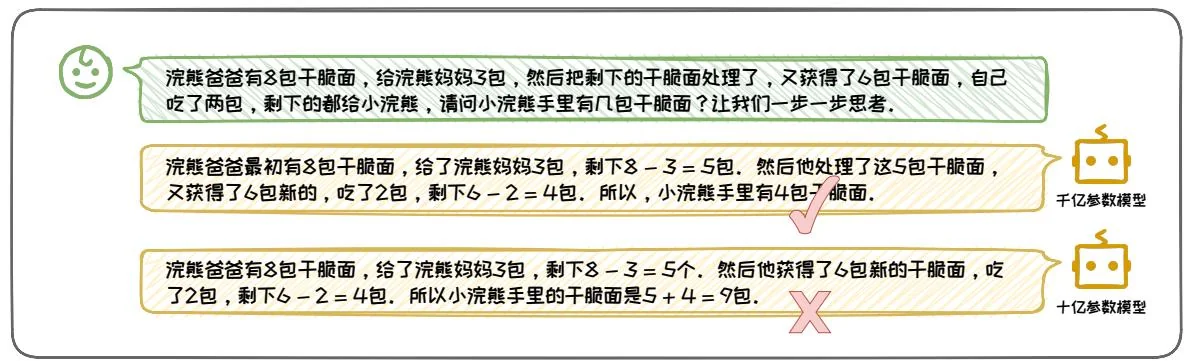 在模型规模的考量上,CoT技术应用于参数量超过千亿的巨型模型时,能够显著提升其性能,例如,PaLM[5]模型和GPT-3[3]模型等模型。然而,在规模较小