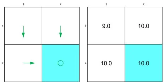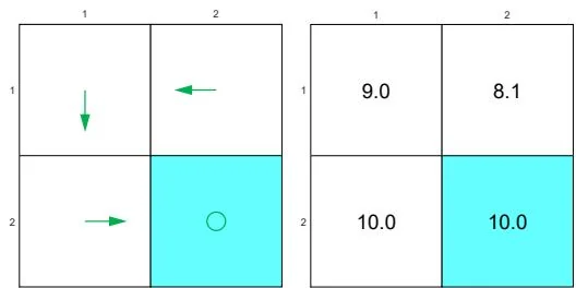 Consider the example in Figure 3.4. The reward settings are and . In addition, the agent receives a reward of for every movement step. The discount rate is selected as .