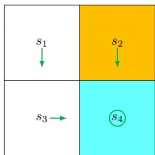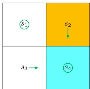 v2(s1)=γ1,v2(s2)=1+γ1,v2(s3)=1+γ1,v2(s4)=1+γ1.v _ {2} (s _ {1}) = \gamma 1, \quad v _ {2} (s _ {2}) = 1 + \gamma 1, \quad v _ {2} (s _ {3}) = 1 + \gamma 1, \quad v _ {2} (s _ {4}) = 1 + \gamma 1.