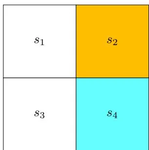 v1(s1)=0,v1(s2)=1,v1(s3)=1,v1(s4)=1.v _ {1} (s _ {1}) = 0, \quad v _ {1} (s _ {2}) = 1, \quad v _ {1} (s _ {3}) = 1, \quad v _ {1} (s _ {4}) = 1.
