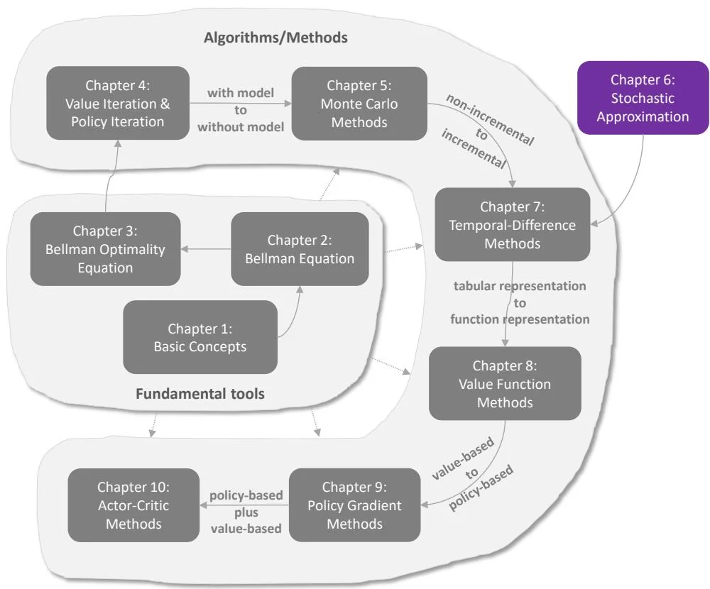 Chapter 5 introduced the first class of model-free reinforcement learning algorithms based on Monte Carlo estimation. In the next chapter (Chapter 7), we will introduce another class of model-free reinforcement learning algorithms: temporal-difference learning. However, before proceeding to the next chapter, we need to press the pause button to better prepare ourselves. This is because temporal-difference algorithms are very different from the algorithms that we have studied so far. Many readers who see the temporal-difference algorithms for the first time often wonder how these algorithms were designed in the first place and why they can work effectively. In fact, there is a knowledge gap between the previous and subsequent chapters: the algorithms we have studied so far are