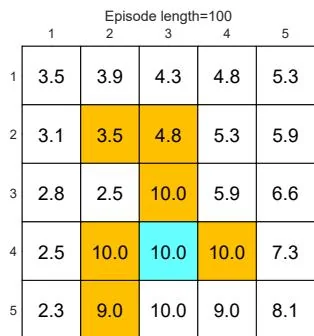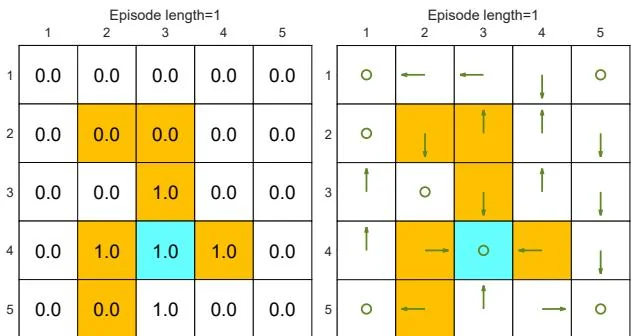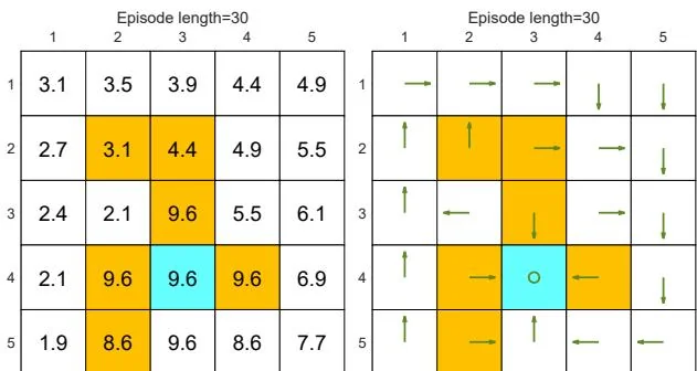 While the above analysis suggests that each episode must be sufficiently long, the episodes are not necessarily infinitely long. As shown in Figure 5.4(g), when the length is 30, the algorithm can find an optimal policy, although the value estimate is not yet optimal.