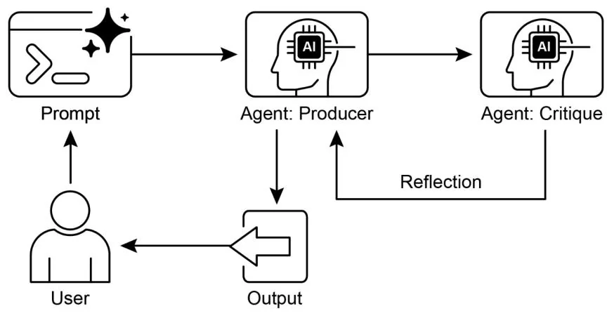 - A powerful implementation is the Producer-Critic model, where a separate agent (or prompted role) evaluates the initial output. This separation of concerns enhances objectivity and allows for more specialized, structured feedback.