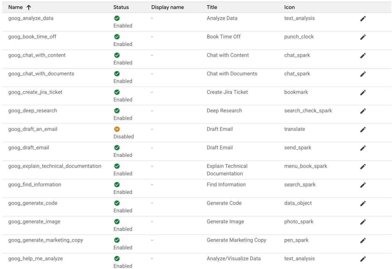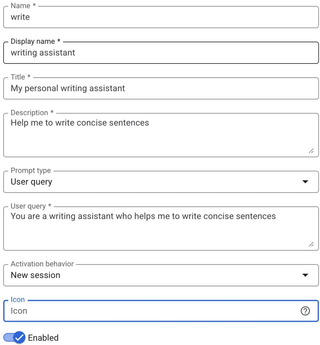 The Agent can then utilize its own prompt, chosen from a gallery of pre-made prompts provided by Google, as illustrated in Fig. 3.