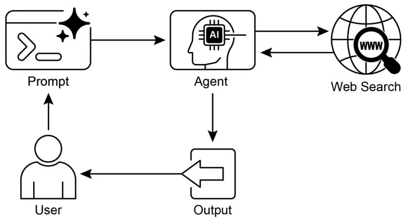 Fig. 3: Knowledge Retrieval pattern: an AI agent to find and synthesize information from the public internet in response to user queries.