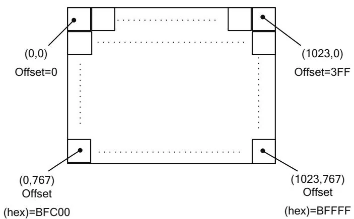 In device memory, the textures are addressed in row-major order. A 1024x768 texture might look like Figure 10.1, where Offset is the offset (in elements) from the base pointer of the image.