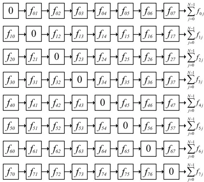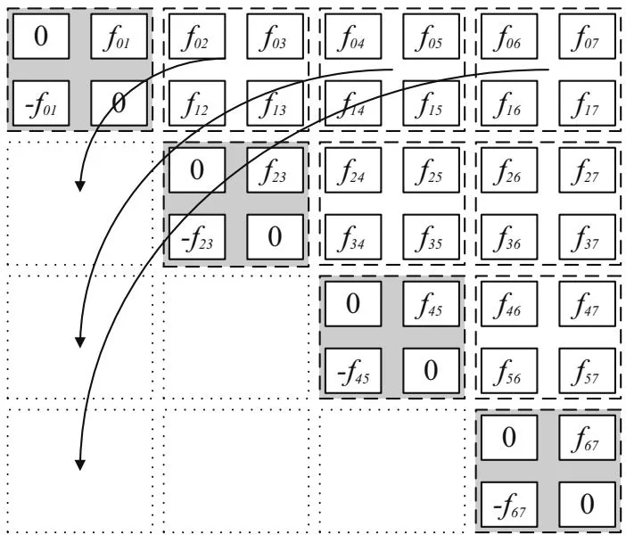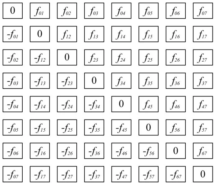 Figure 14.1 "Matrix" of forces (8 bodies).