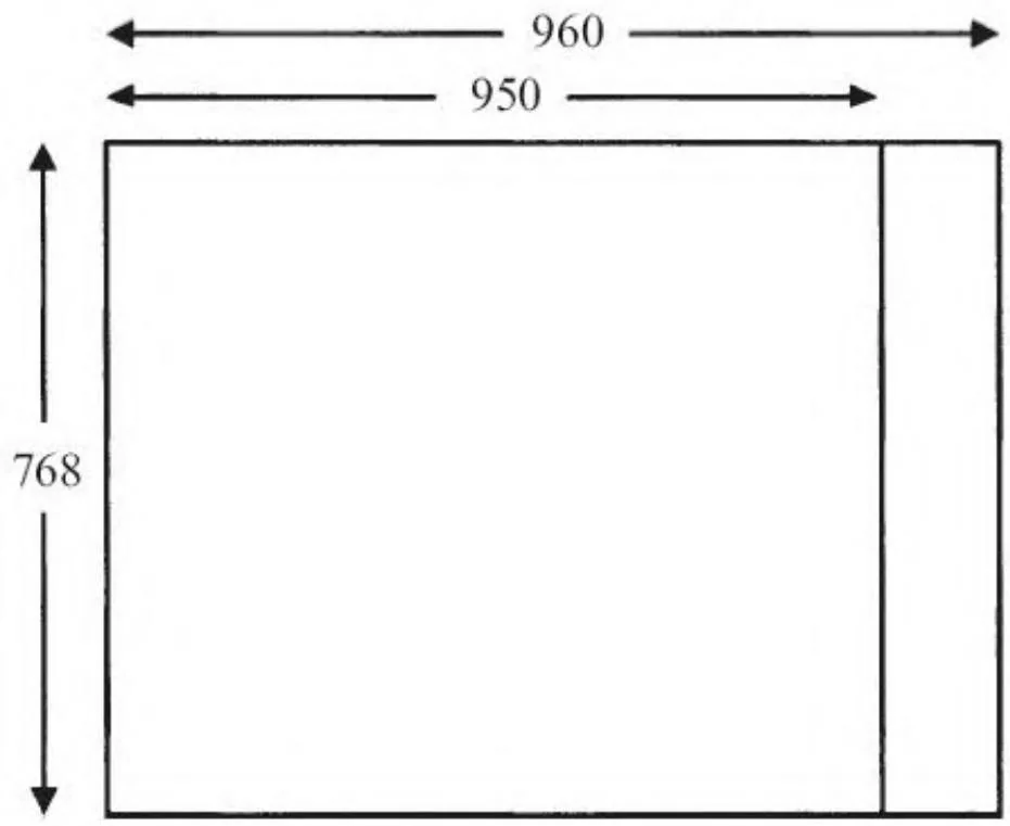 事实上,这种地址计算只适用于多数特殊的纹理宽度,例如1024,因为1024为2的幂次,符合所有形式的对齐约束限制。为了通用化,不单单只针对特殊的纹理大小,CUDA实现了等步长线性(pitch-linear)的寻址,纹理内存的宽度与纹理的实际宽度并不相同。针对各种非特殊的宽度,硬件将强制使用对齐限制,使得在纹理内存中,每个元素的访问将不再按照实际纹理中每个元素的宽度标准进行。例如一张宽度为950的纹理,如果对齐限制是64字节,则按字节计算的宽度需要填充到960 [1](填满下一个64字节)。此纹理如图10-2所示。