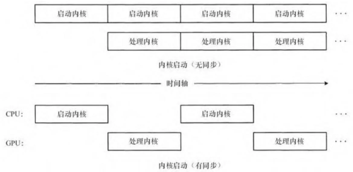 即使不进行同步操作,如果内核运行时间不比启动内核所花的时间(3.4毫秒)长,GPU可能会在CPU提交更多工作之前闲置。为了知道