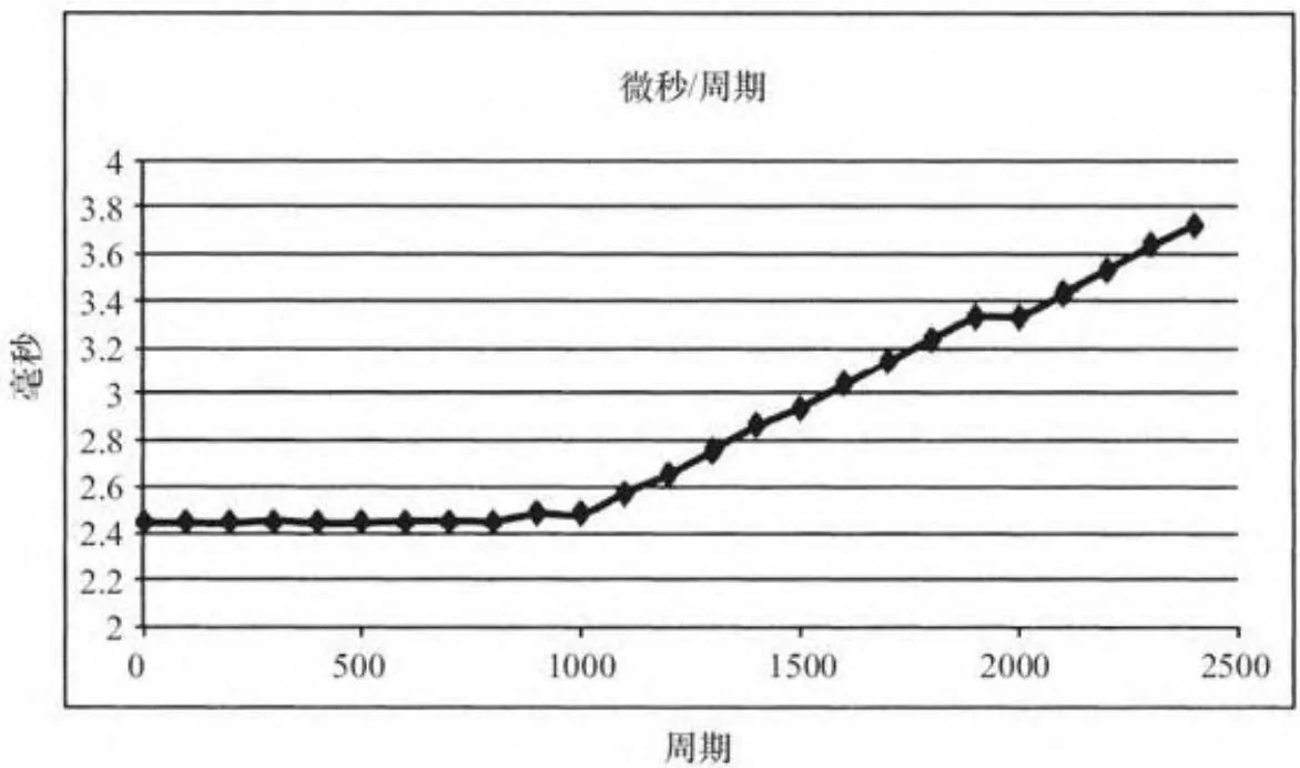图6-2 waitKernelAsync.cu的毫秒/周期示意图
