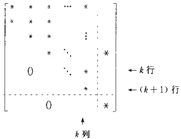 关于实对称矩阵(或一般的实矩阵)特征值的Givens法也是利用平面旋转,但采用的方式有所不同。证明,一个对称矩阵 A = [ a i j ] ∈ M n ( R ) A = [a_{ij}] \in M_n(\mathbb{R}) A = [ a ij ] ∈ M n ( R ) 经若干平面旋转后正交等价于一个三对角(对称)矩阵,而一般的 A ∈ M n ( R ) A \in M_n(\mathbb{R}) A ∈ M n ( R ) 经若干平面旋转正交等价于一个(下)Hessenberg矩阵。关于三对角矩阵和Hessenberg矩阵可见(0.9.9)和(0.9.10)。提示:选一个平面旋转 U 1 , 3 U_{1,3} U 1 , 3 使得 U 1 , 3 A U 1 , 3 U_{1,3}AU_{1,3} U 1 , 3 A U 1 , 3 的1,3元为0。选另一个平面旋转使1,4元为0,继续做下去直到1, n n n 元。然后转到2,4元,接着做下去。注意,这样一步步做下去不会影响前面已经选定的0元;并且正交等价保持对称性不变。一个三对角矩阵的特征多项式是容易确定的,而其特征值可用求根的方法来确定。注意到经过有限多次平面旋转后Givens法得到一个三对角矩阵,但它不会显现特征值或特征向量,不过利用另外的计算一定能得到它们。Jacobi法一般不会经有限多次平面旋转后中止,但它的目标是产生一个对角矩阵,而且得到一个标准正交特征向量组。