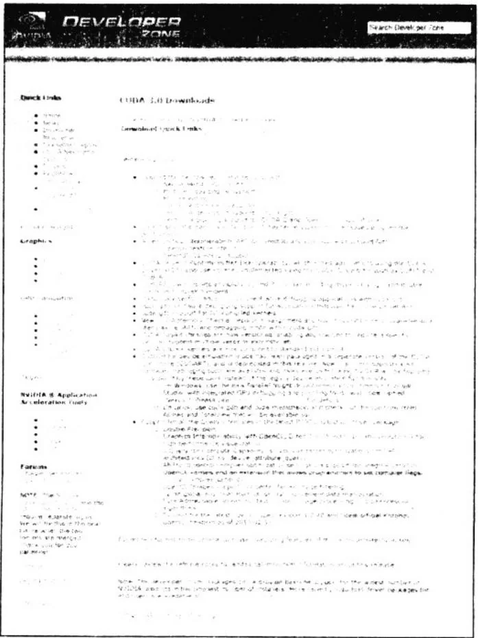 在这个页面上选择相应的平台,包括32位/64位版本的Windows XP、Windows Vista、Windows 7、Linux和Mac OS等,然后下载CUDA工具箱来编译在本书中包含的代码示例。此外,你还可以下载GPU Computing SDK代码示例集,其中包含了大量非常有帮助的示例程序。本书不会介绍GPU Computing SDK代码示例集,但它们对于本书内容是一种非常好的补充,从该示例集中不仅可以学习到更多编程风格,还可以阅读更多的示例代码。需要注意的是,虽然本书的所有代码都可以在Linux,Windows以及Mac OS等平台上运行,但我们应用程序的目标运行平台为Linux和Windows。如果你正使用Mac OS X,那么有些代码示例可能得不到支持。