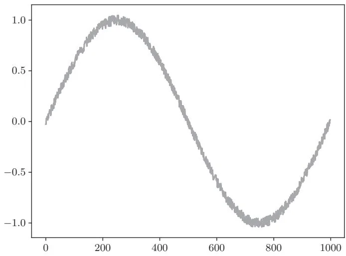 基于以上实现,我们来尝试训练RNN。这里将包含噪声的正弦波作为数据集使用。我们可以使用dezero/datasets.py中的SinCurve类加载数据集,代码如下所示。