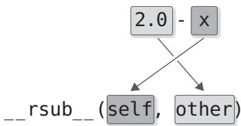如图22-1所示,在调用__rsub__(self, other)时,减号运算符右项的x传给了self参数。考虑到这一点,__rsub__应按如下方式实现。