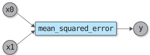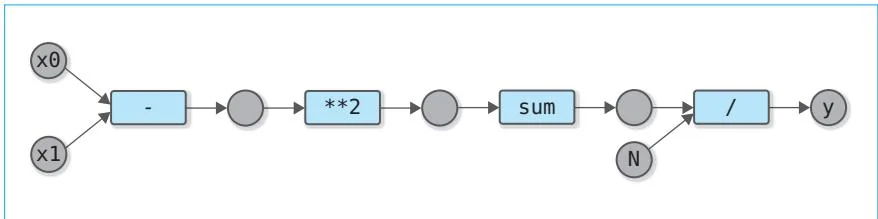 用新方法实现的mean_squared_error函数能得到与之前的版本相同的结果。但从内存效率上来说,新的实现方法更好。这是为什么呢?我们看一下新的mean_squared_error函数的计算图(图42-7)。