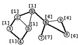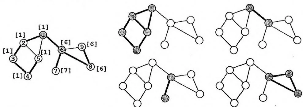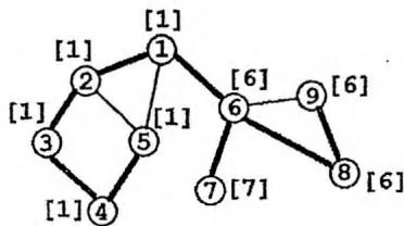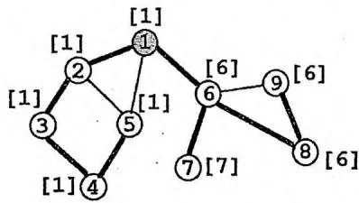 无向连通图和它的搜索树(粗边)在搜索树上 有3个子节点其中 的low值