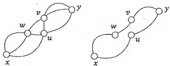 若对于 ,从图中删去边 之后, 分裂成两个不相连的子图,则称 为 的桥或割边。