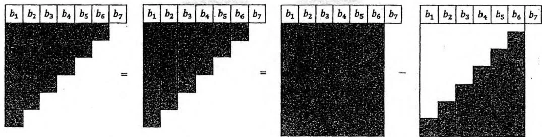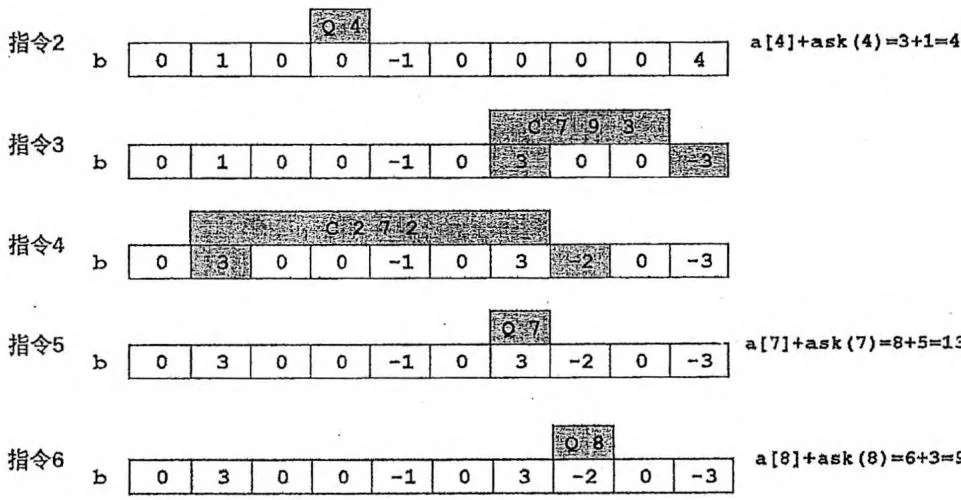 执行上面两条指令之后,我们来考虑一下 bb 数组的前缀和( b[1x]b[1 \sim x] 的和)的情况: